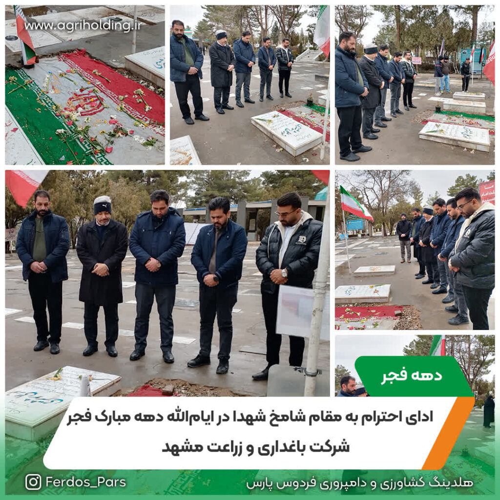 به گزارش روابط عمومی شرکت باغداری و زراعت مشهد، به مناسبت گرامیداشت چهل و هفتمین سالگرد پیروزی شکوهمند انقلاب اسلامی و در جریان برنامههای فرهنگی ایامالله دهه فجر، جمعی از مدیران و کارکنان شرکت باغداری و زراعت مشهد با حضور در گلزار مطهر شهدا، با آرمانهای والای امام راحل و شهدای گرانقدر تجدید میثاق کردند.