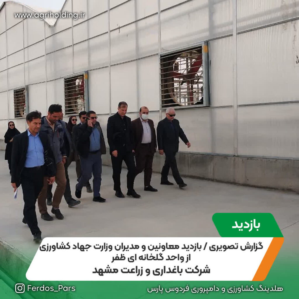 به گزارش روابط عمومی شرکت باغداری و زراعت مشهد، آقای دکتر برومندی معاونت باغبانی و خانم دکتر فتاحی فر مدیرکل گلخانه های کشور از وزارت جهاد کشاورزی، آقای دکتر جعفری ریاست سازمان جهاد کشاورزی خراسان رضوی به همراه مدیران جهاد کشاورزی شهرستان چناران و با حضور مدیران این شرکت از واحد گلخانه ای ظفر بازدید بعمل آوردند.