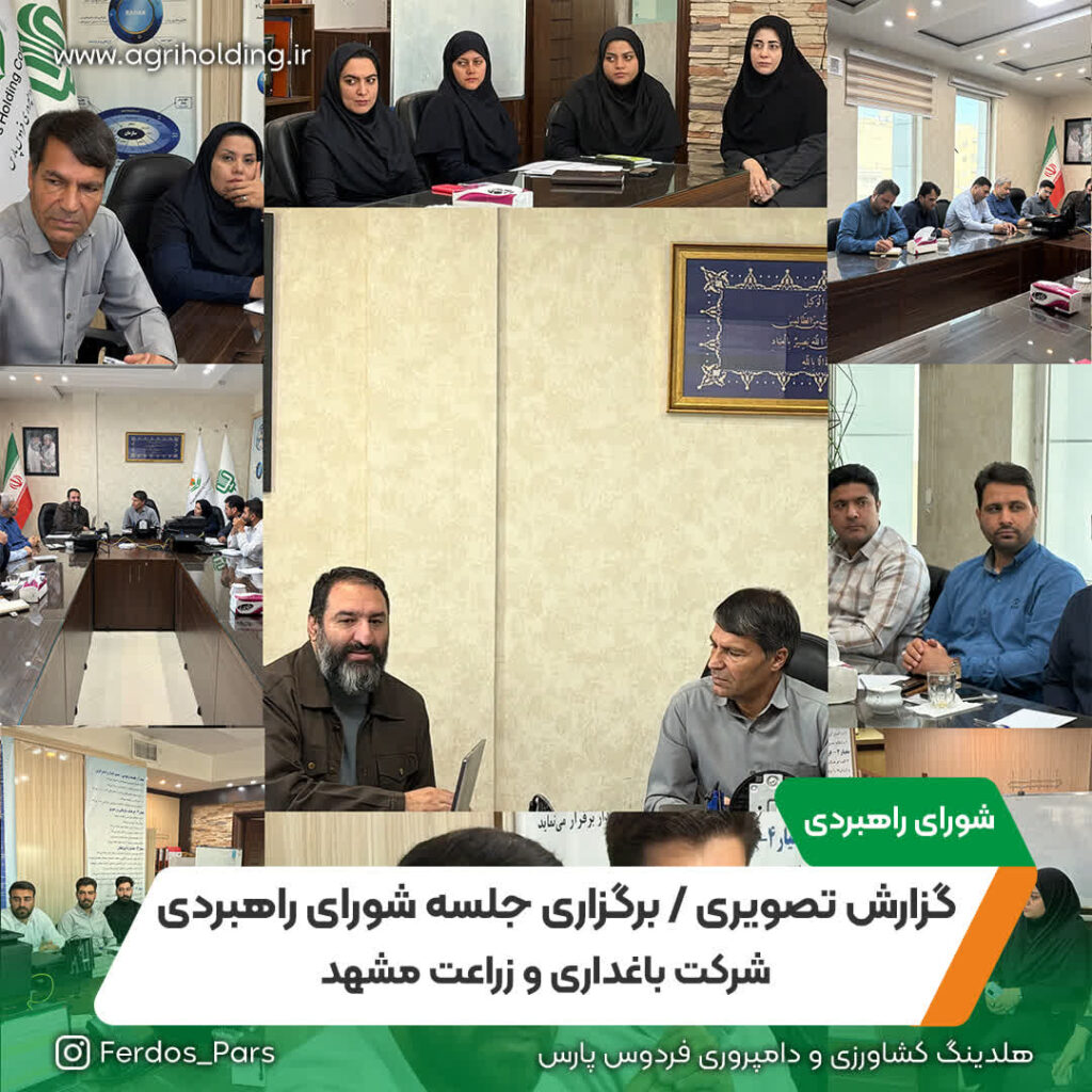 به گزارش روابط عمومی شرکت باغداری و زراعت مشهد، جلسه شورای راهبردی این شرکت با حضور اعضای هیأت‌مدیره، مدیران و کارشناسان واحدهای تابعه در محل اتاق جلسات دفتر مرکزی برگزار شد. این نشست با هدف بررسی جامع مسائل، چالش‌ها و برنامه‌های راهبردی مجموعه تشکیل شد.