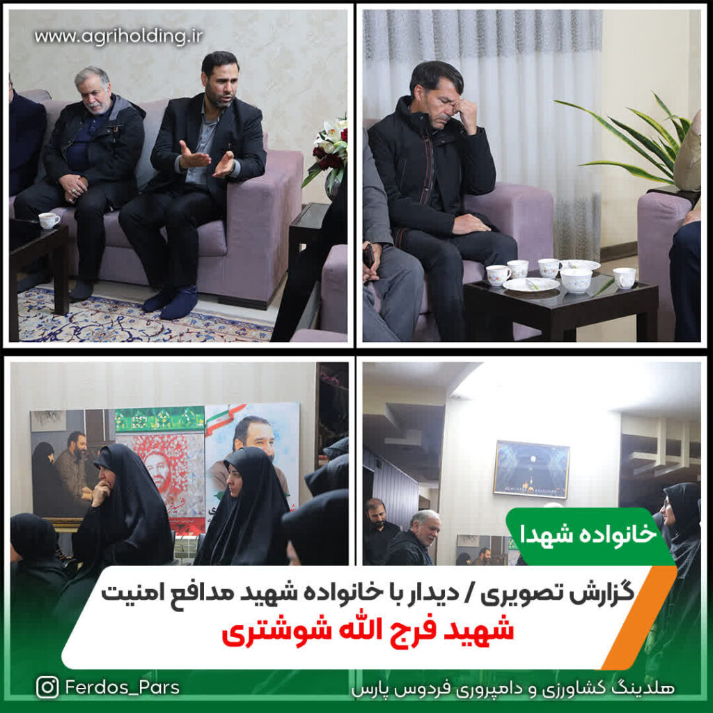 به گزارش روابط عمومی شرکت باغداری و زراعت مشهد آقای دکتر صحرائی، معاون محترم توسعه مدیریت و منابع بنیاد مستضعفان انقلاب اسلامی به همراه مدیران این شرکت با حضور در منزل خانواده معزز شهید مدافع امنیت فرجالله شوشتری، با ایشان دیدار و گفتوگو کردند.